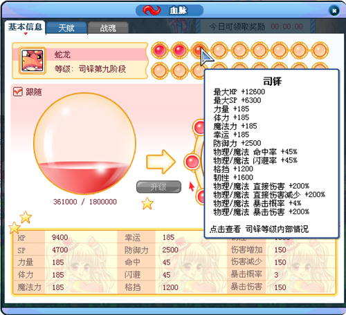 当血脉等级升至司铎后将可打开天赋页签!