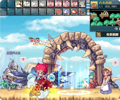 “远古魔王金币”可在王国兵士长处兑换黑市药水(260级以上使用)及黑市百宝箱(260级以上使用)